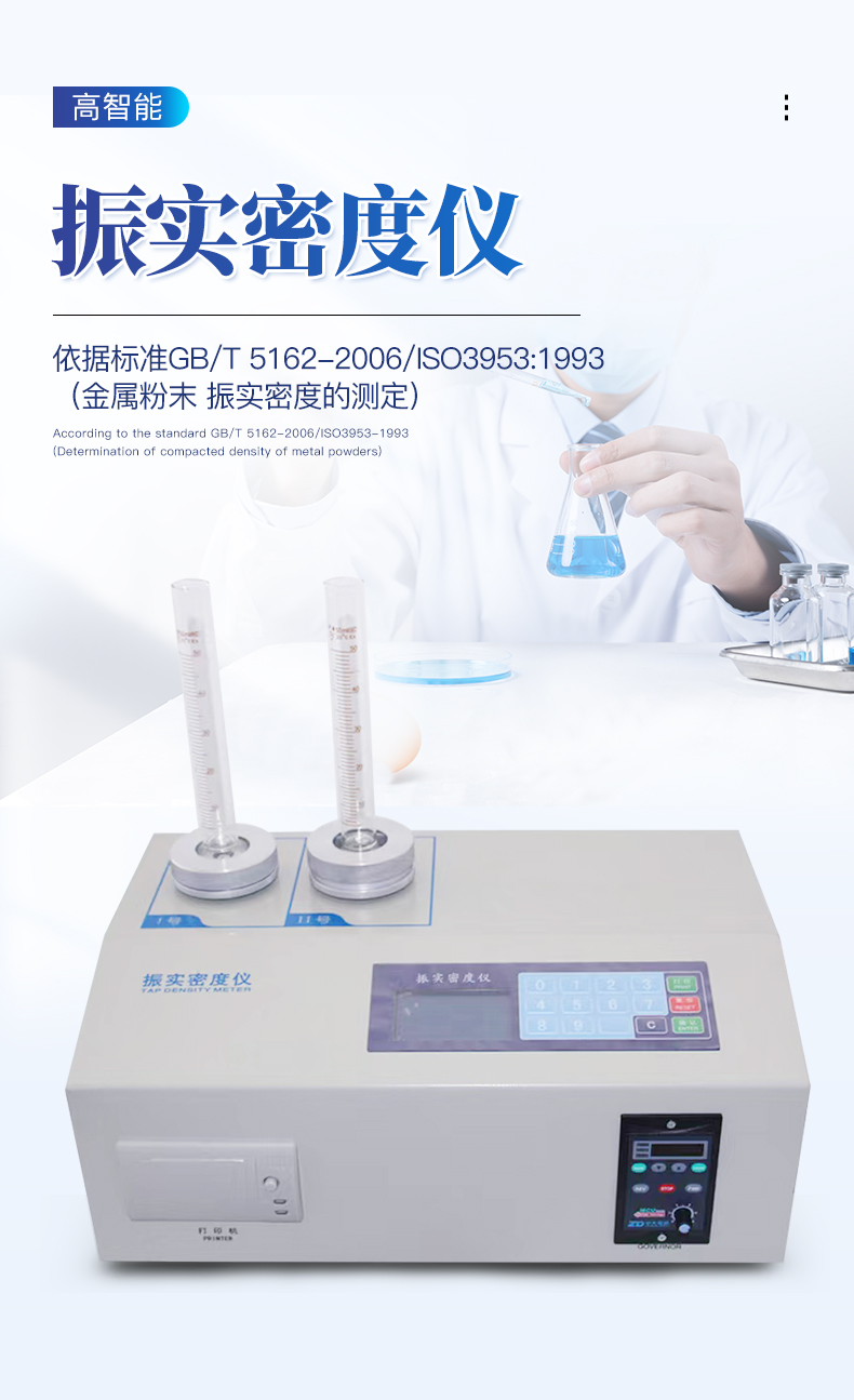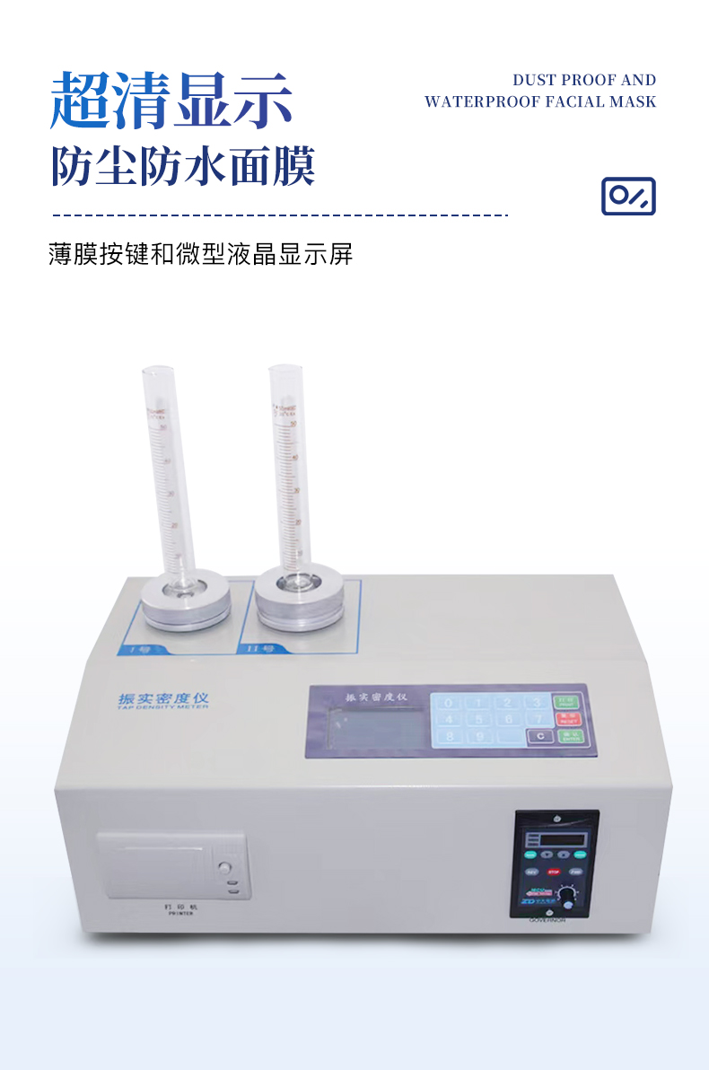 | 試樣重量:≤500.00克; | 試樣體積:≤250.00毫升; | 單次振動次數:0~99999次(當設定為0次時結果輸出為"松裝密度"); | 電機允許力矩:0.86 N.m; | 振動頻率: 0~300轉/分鐘(連續可調); | 液晶顯示屏(輸出樣品信息); | 微膜按鍵(操作方便) | 兩個工作位可以同時使用 | 振動幅度:3mm,(可調) | ZS2高精度振實密度儀是專門針對固體粉體密度的測量儀器,按照國家標準GB/T 5162-2006/ISO3953:1993,參照美國藥典標準研發制造。廣泛應用于工業、電池材料、藥品材料、奶制品、磨料、造紙、水泥、涂料、科研機構、大中專院校以及各種金屬和非金屬行業。 |